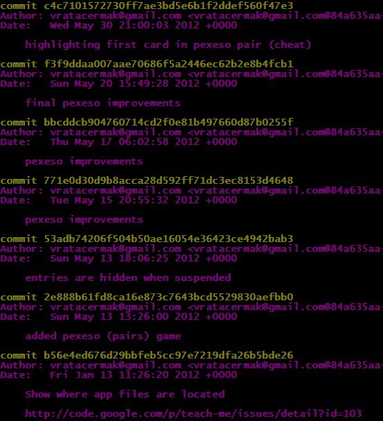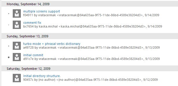 So, I take one of the open source repository teach-me from google code http://teach-me.googlecode.com/svn. This is fairly small Repo has about 270 changes between 2009 and today.