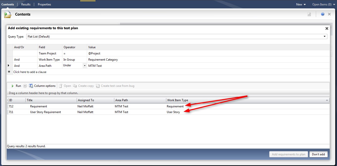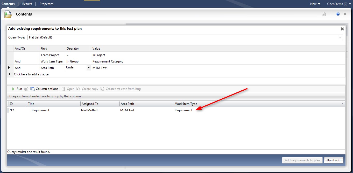 Solution: MTM uses the ‘Requirements Category” to determine which work items can be added to a test plan. Below I will should you how to customize this.
