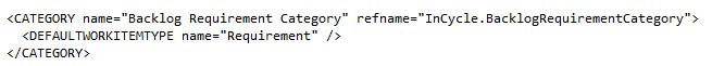 Using witadmin.exe we would update the ‘categories.xml’ file to include a new category to use for the product backlog as follows: