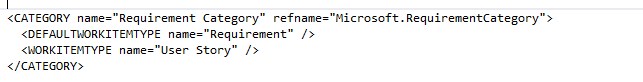 What we would like to see is not only user stories in the list but requirements as well. In order to accomplish this we would need to change the requirements category and re-configure the backlog in order to accomplish this. The reason that we could not simply add a new work item type into the requirements category and call it a day is due to the ‘Portfolio Management ‘ feature would not work after making such a change. So what we need to do is de-couple portfolio management from the requirements category so that we can change the way MTM works without affecting the backlog.